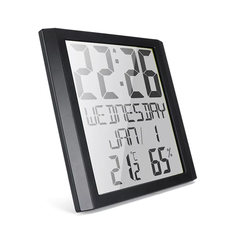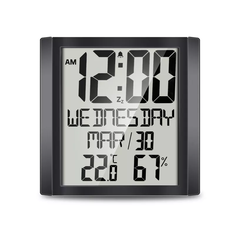 1. Horloge analogique avec calendrier, affichage de l'heure, de la date, de la semaine, de la température intérieure et de l'humidité.