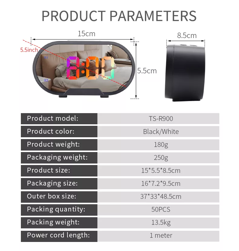 1. Affichage de l'heure LED RVB de 5,5 pouces.