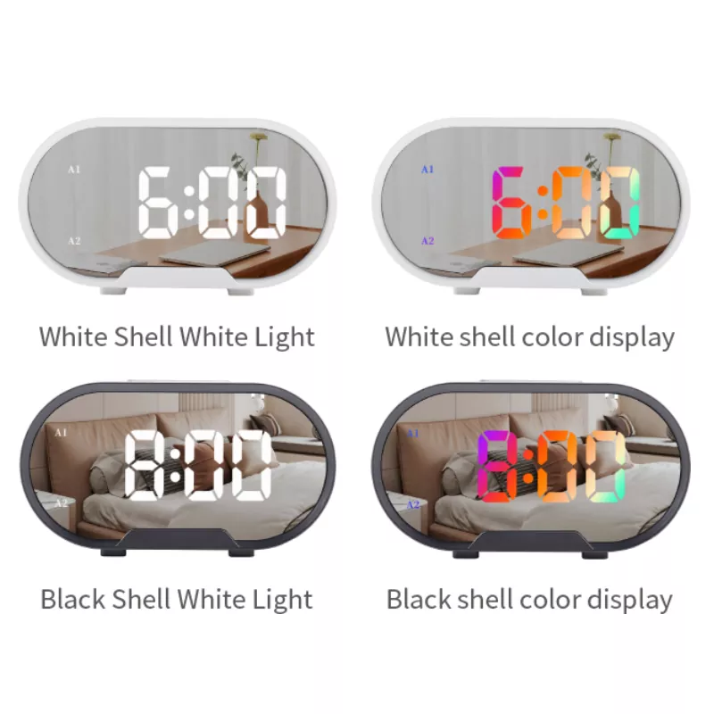 Réveil miroir de bureau à affichage couleur LED RVB