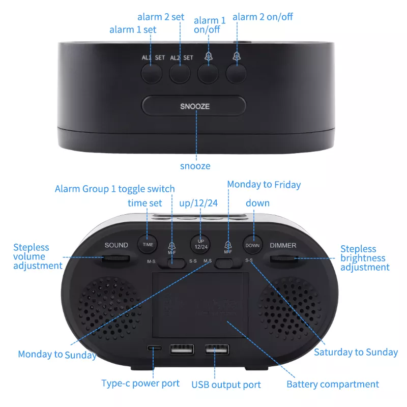 LED double alarmes température veilleuse réveil